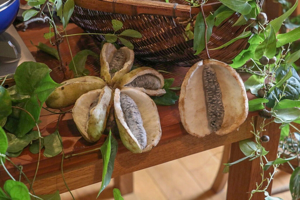 あけびの実を初めて食べる人もいたかも。(わたしは、下北山村で野生のあけびを、村在住さとびサポーター・北くんにとってもらったことがあったことを思い出していました)