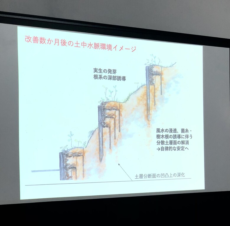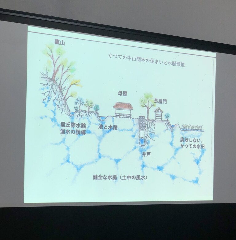 環境を痛めずに人間にとっても暮らしやすい状態を作る技術体系と知見を先人はすでに持っていたが、今は忘れられている。もういちど、そこから学び現代に取り戻すことで、水の濁り、生きものの数、地滑り、ナラ枯れ、植生の矮小化などが改善されていく。