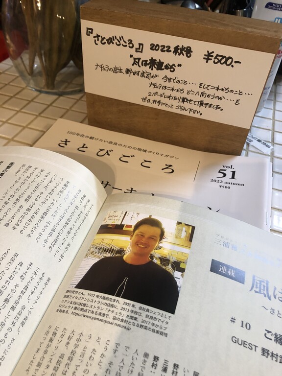 この前秋号(vol.51)を出したばかりなのに、もう冬号の準備をしないと間に合わないような気持ちが押し寄せてきています。冬号だけでなく、次の春号、次の夏号、、、、さとびって、作る側になると結構目まぐるしいものです。年齢のせいにしておきますけど、たまに息切れします(笑)。