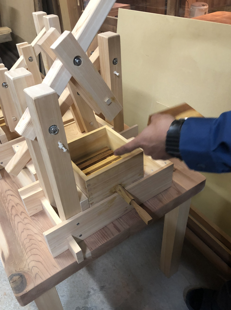 久住さんの最近のしごと。木材を使ってものづくり。醤油しぼりワークショップキットです。