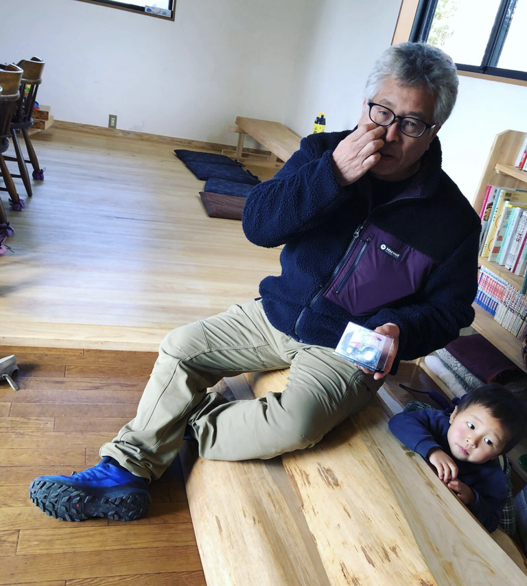 写真に写るおじさんは、編集部員(編集長の運転手担当) さんです。見てほしいのは、その奥の床スペース!