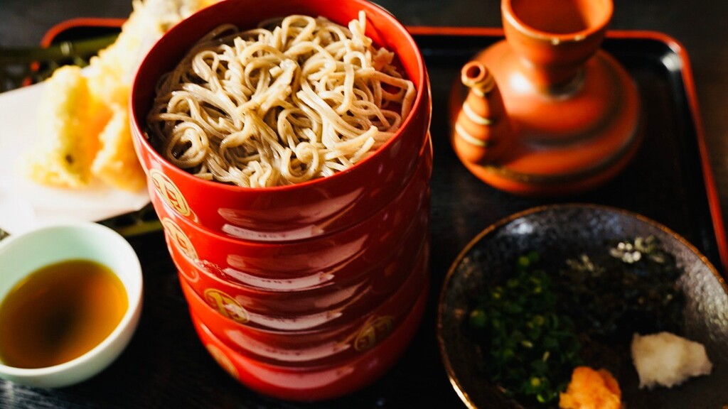 ここはぜひ名物割子蕎麦をご指定ください。細めで、しっかりとしたコシのある蕎麦は、茹で加減も絶妙。喉越しのときに、ふわっと蕎麦の香り。割子の一番上に薬味と出汁をかけて、食べ終わったら残りの出汁を次の割子にかけて、下へ下へとおかわりしていきます。最後は蕎麦つゆまで、お吸い物のように美味しくいただけます。