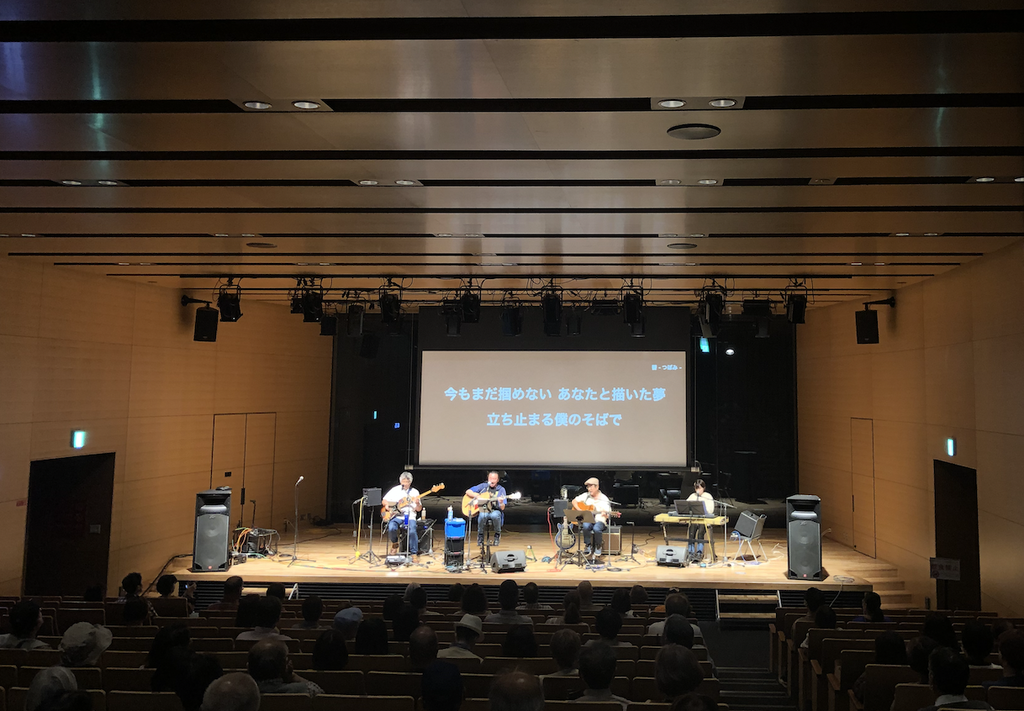 となりで観察していますと、青春時代からの親友であるボーカル(今村さんと言います)さんが喜ぶことに付き合おう、というのが始まりでした。今村さんは照明のプロ。部員さんは音響やイベント制作の元プロ(現在はオフィスエルインク所属で福祉関係のプロ)、どちらもステージ愛があり、それも、人に喜んでもらうことによって承認欲求(笑)を満たしたい傾向があります。企画は大好きなのに実行する段階になると悩んでしまう今村さんと、ずけずけ実践する部員さんとのコンビネーションによって成り立ち、現在はギターの上手なたーちゃんさんが加わり、音楽性がアップしております。