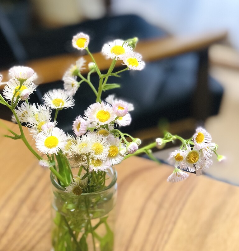 畑活から連れて帰ってきたハルジオン(食べられますが、飾っています)